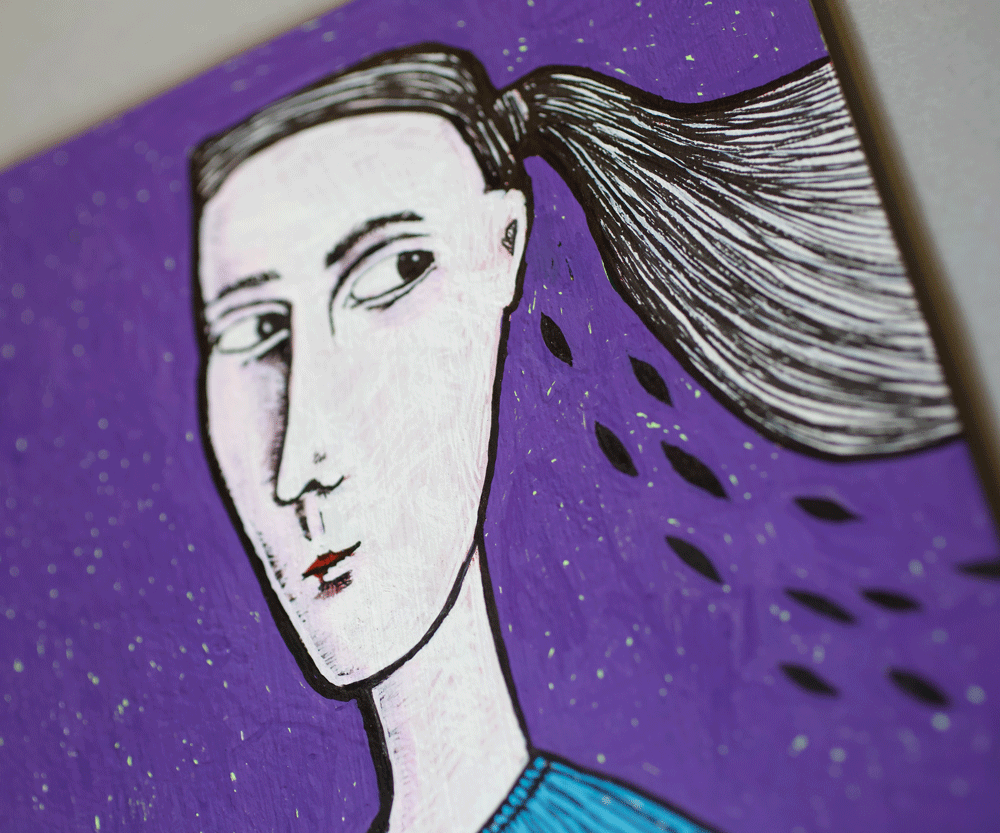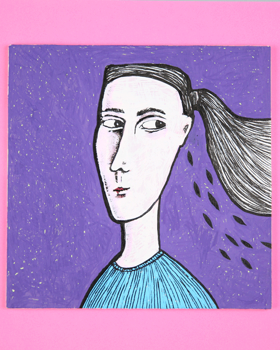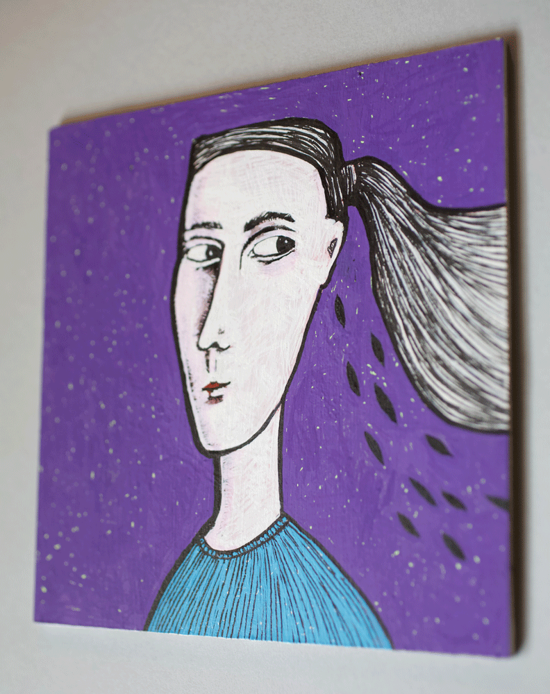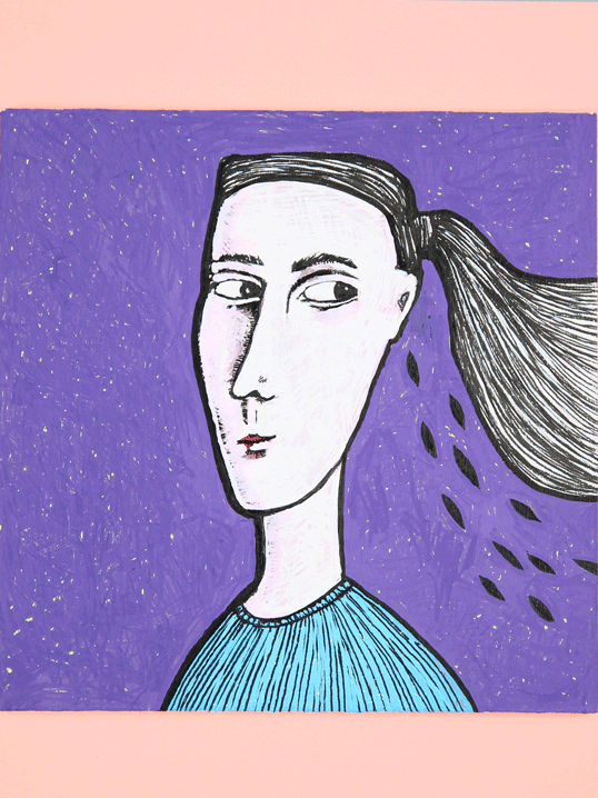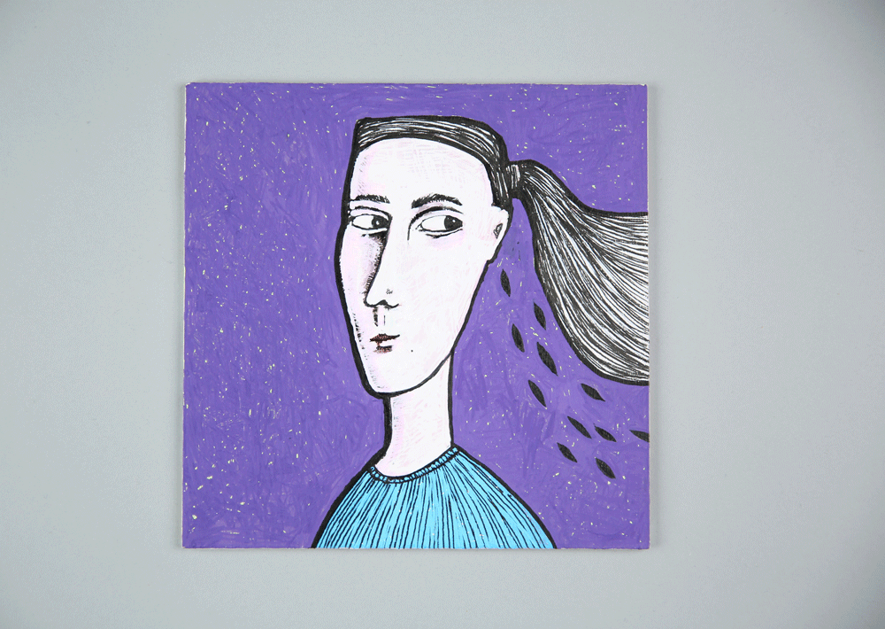 Bild / Dame mit Zopf Dieses Bild ist im Format (15 x 15 cm) mit Acrylmarkern und Finelinern gezeichnet. Die Zeichnung ist ein Unikat – Sie ist direkt auf festem Karton gezeichnet.