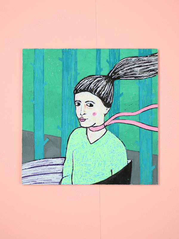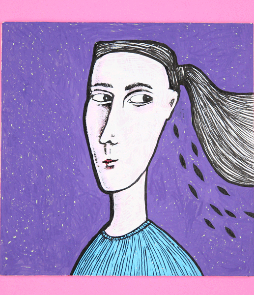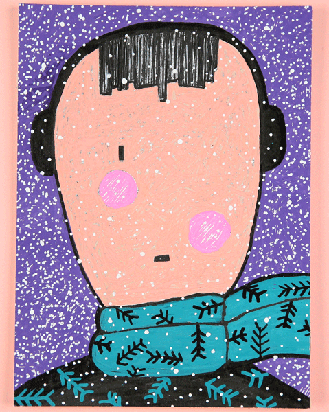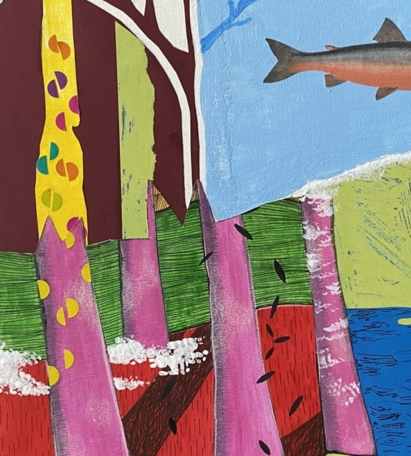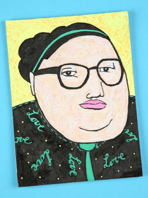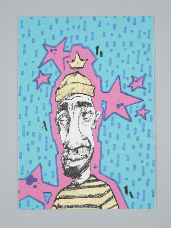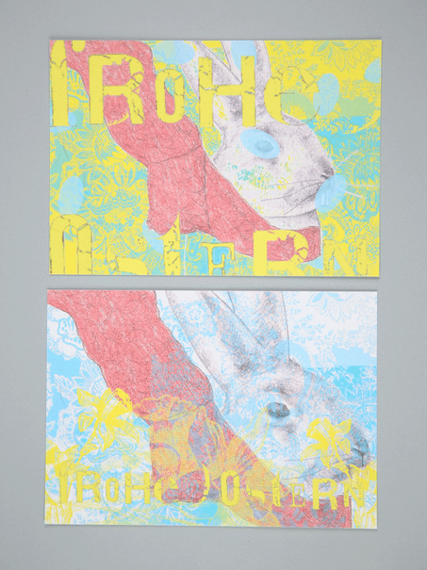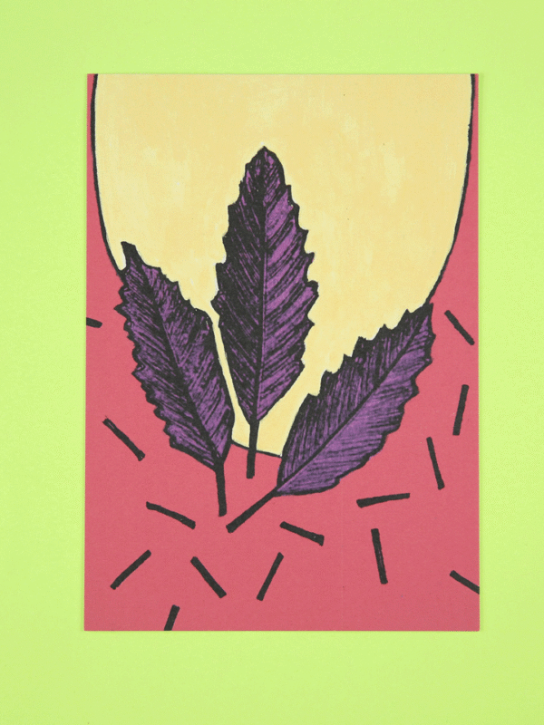 Die Zeichnungen sind auf Papier mit Farbstift entstanden. Schrift gestempelt. Beides digital als Collage zusammengesetzt.