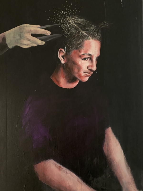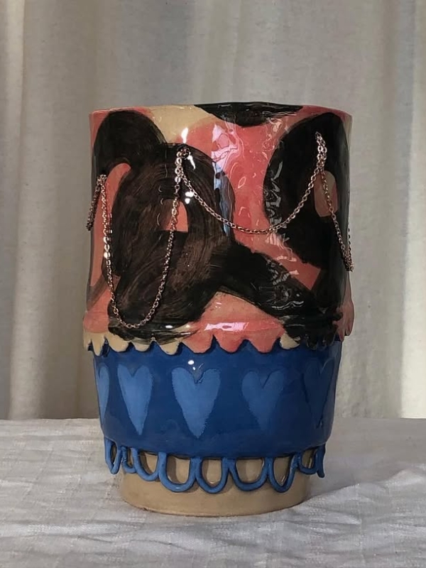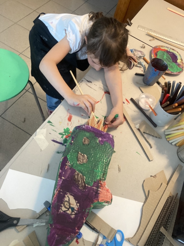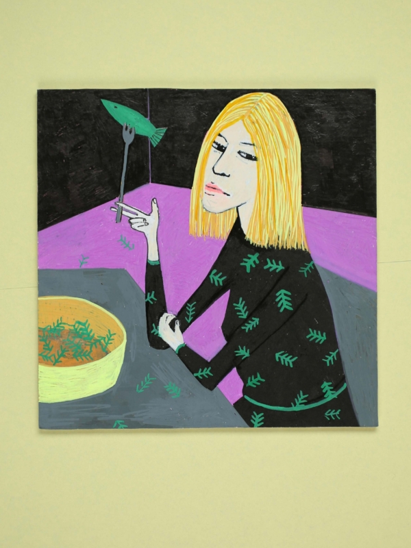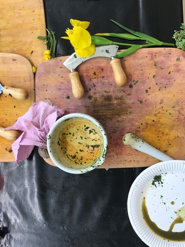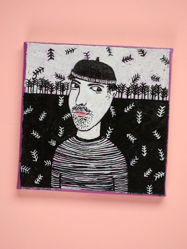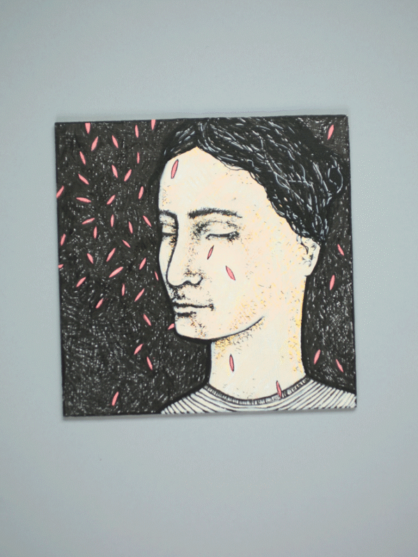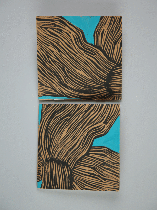 Die Zeichnungen sind auf Papier mit Farbstift entstanden. Schrift gestempelt. Beides digital als Collage zusammengesetzt.
